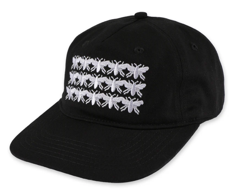 Pass~Port Scissorcraft Workers Cap in Black from range #47. The Pass~Port workers cap is a 5 panel hat made from 100% cotton twill and features direct embroidery detailing with adjustable strap back with brass buckle and zero fusing for a worn in fit.